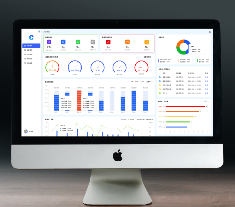 通過(guò)4G無(wú)線傳輸技術(shù),實(shí)時(shí)獲取力矩限制器、幅度傳感器,高度傳感器,風(fēng)速傳感器,能源電耗等數(shù)據(jù)指標(biāo),并通過(guò)可視化界面展示,方便管理者快速做出準(zhǔn)確的決策。